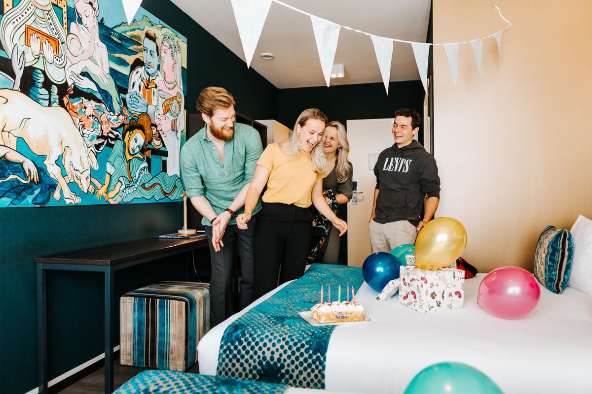 The 4-Person Double Studio is perfect for small families or groups up to 4 persons. Relax on one of the two super comfortable double beds, start your evening with your favourite tv series and treat yourself with room service or delicious meal from our own Indian street food restaurant, Veggiesaurus! All 4-Person Double Studios are equipped with a handy kitchenette and a desk for the workaholics among us.